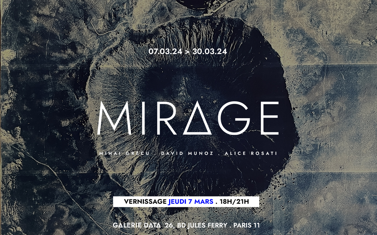 L'exposition présente les oeuvres de Mihai Grecu, David Munoz et Alice Rosati. La notion de mirage est ici employée de manière métaphorique pour décrire des transpositions du réel, par la représentation d’une nature artificielle ou fantasmée.