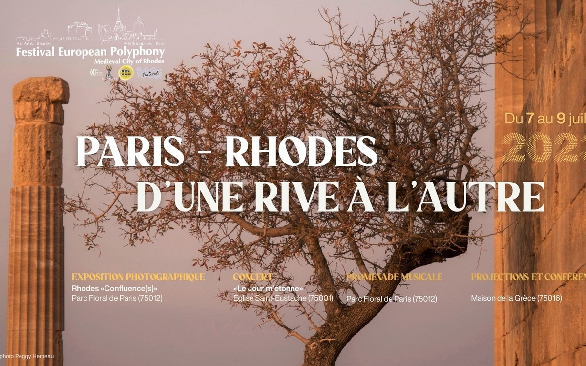 C’est dans ce même élan que le Festival s’installe à Paris pour un programme riche en émotions : concert et promenade musicale avec le chœur Mikrokosmos, exposition sur Rhodes des photographes Peggy Herbeau et Christophe Fillieule, projections et une conférence sur l’histoire de Rhodes et le Dodécanèse. L’occasion pour le public francilien de découvrir Rhodes dans un programme sonore, visuel et immersif, le temps d’un week-end, dans différents lieux emblématiques de Paris.