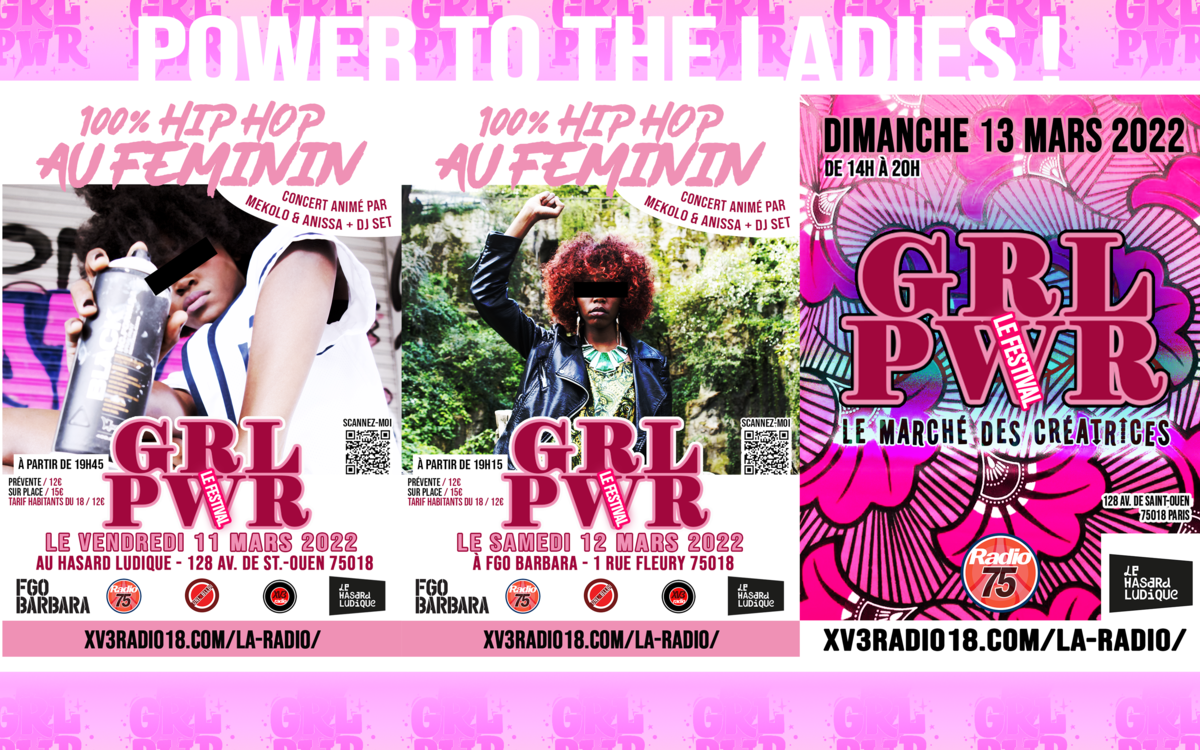 #Radio75, #Xv3radio, FGO Barbara et le Hasard Ludique t'invitent à venir faire la fête les 11, 12 & 13 mars 2022 dans le 18ème, avec au programme : 2 soirées concerts et un marché des créatrices.