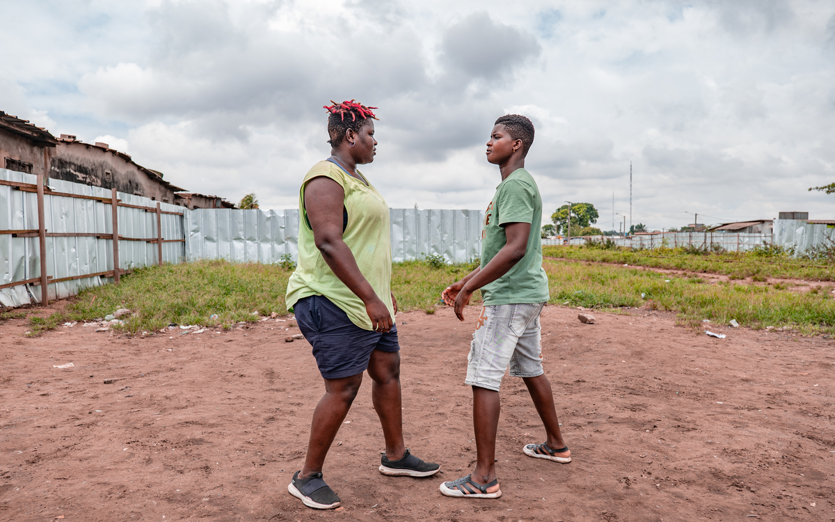 Comme la chorégraphe, les danseuses Anoura Aya Labarest et Christelle Ehoué ont grandi à Abobo, quartier populaire d’Abidjan (Côte d’Ivoire). Elles ont dû prendre (faire) place en déconstruisant une féminité assignée. Entre coupé-décalé, roukasskass et figures acrobatiques, Aya a gagné le surnom de « la Chinoise » en raison de la vitesse de ses mouvements, tandis que Christelle, par sa corpulence, est devenue « Gros camion », surnom qu’elle assume avec un charisme irrésistible. Leur rapport à la ville, leurs rêves et leurs féminités ont inspiré un duo de danse incandescent. Avec ces « Filles-Pétroles », Nadia Beugré propose un puissant portrait d’une jeunesse en feu.