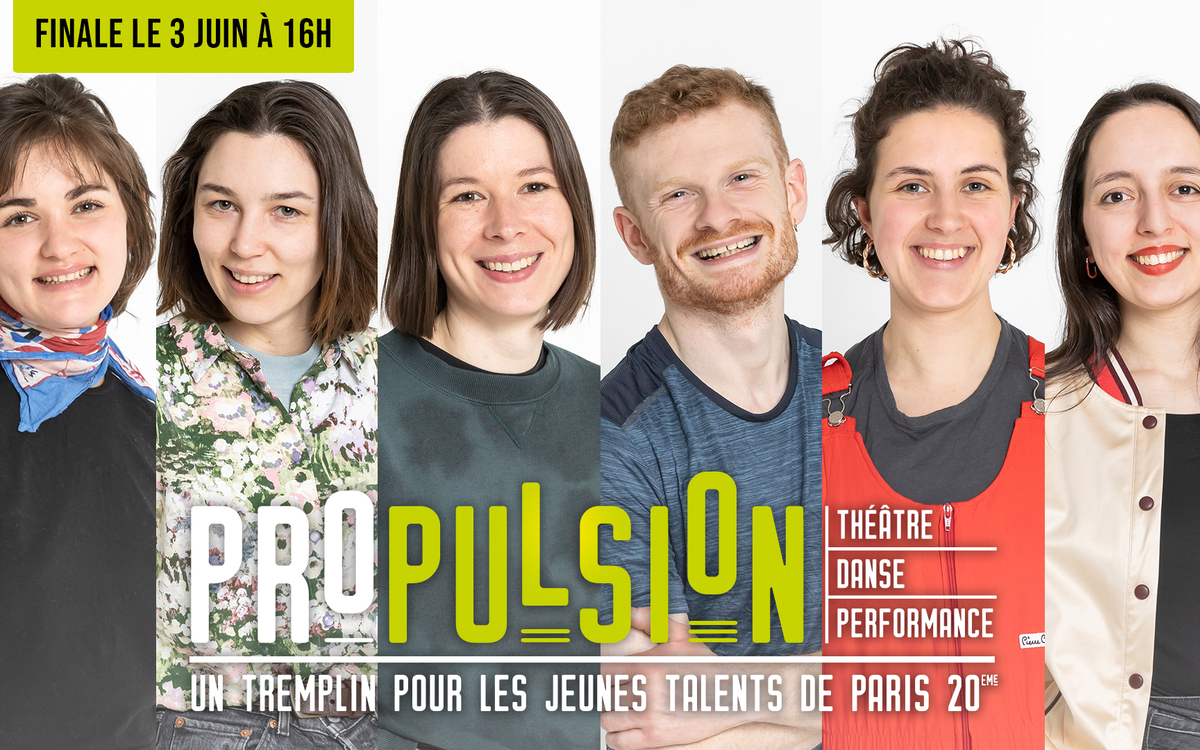 FINALE TREMPLIN PROPULSION Six jeunes talents du 20e arrondissement, finalistes du Tremplin Propulsion : venez découvrir aux Plateaux Sauvages les propositions artistiques d'Apolline Delagarde, Jeanni Dura, Gabrielle Geffroy, Corentin Hennebert, Elina Martinez et Mona Taïbi. Et participez également au vote pour le Prix du Public ! Tremplin organisé par Les Plateaux Sauvages, Le Regard du Cygne et la Mairie du 20e arrondissement de Paris.