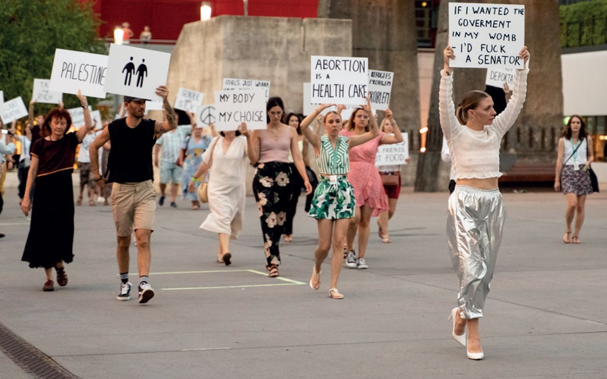 « Hands up », c’est autant la description d’un geste qu’une injonction. Les bras en l’air expriment une conviction voire une aspiration, qu’elle soit politique, physique ou spirituelle. Et souvent, dans un contexte de conflit, un signe de violence potentielle, voire concrète. En s’inspirant des manifestations pro-démocratie apparues en 2020 et 2021 à Minsk, si proche de Vilnius, la Lituanienne Agnietė Lisičkinaitė poursuit sur sa route qui efface la frontière entre l’art et la vie. Et fait des protestations citoyennes le point de départ d’un acte artistique qui questionne l’essence de la marche commune. Car tout rassemblement passe par des expériences physiques, même dans un théâtre. Et si vous leviez les bras, vous aussi, pour participer à l’expérience ? Seriez-vous plutôt clubbing, rebelle, yoga ou croyant?
