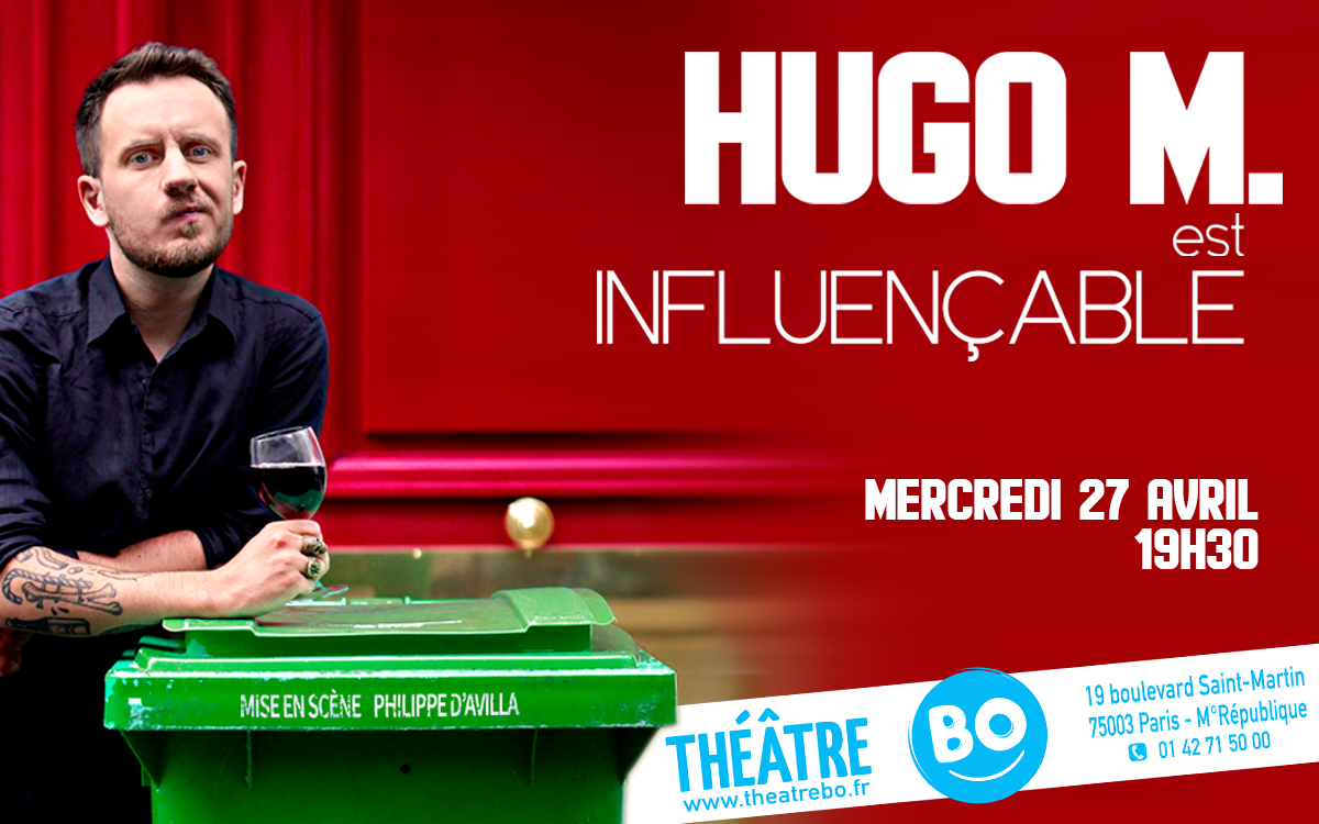 Hugo dresse une satire de notre société de paraitre, dont il assume être en tête de liste. Être un bobo ça se travaille. Sortir avec une influenceuse, se convertir au végétarisme, envisager l'adoption, ou encore tenter la bisexualité, tant de décisions prises à la légère pour être "cool". De sa plume piquante et aiguisée, il le reconnait : il est influençable. Et vous ?