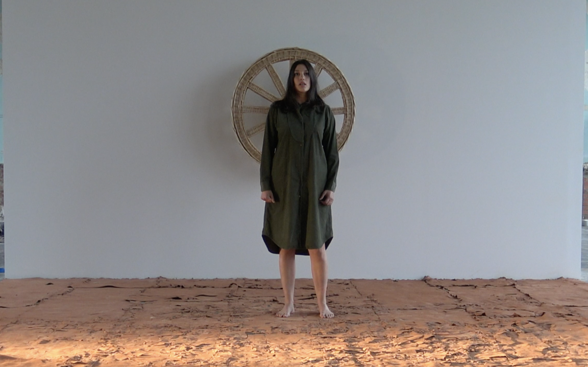 « J’ai choisi comme matériaux l’argile, l’osier et ce chant qui, lui, est en langue romani, car en avril 1971, à Londres, s’est tenu le 1er Congrès international des Roms. » (Rachel Labastie)