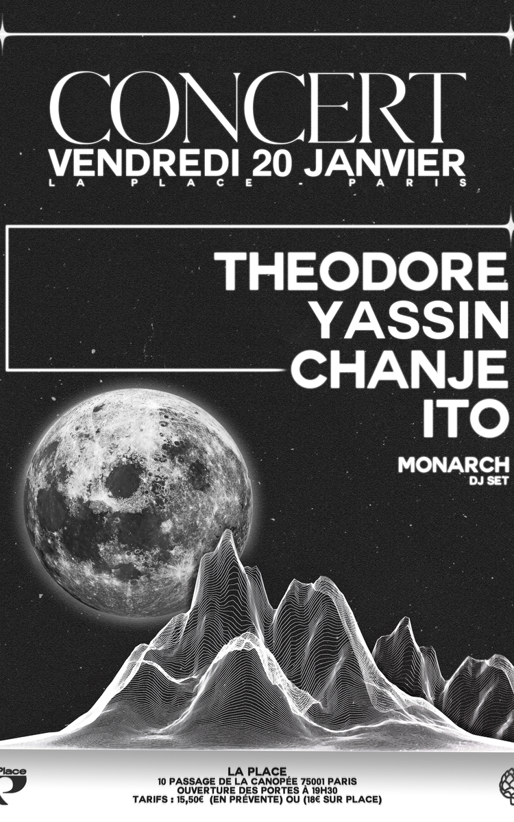 Retrouvez iTo, Chanje, Theodore, Yassin, Monarch en concert sur la scène de La Place le vendredi 20 janvier 2023.