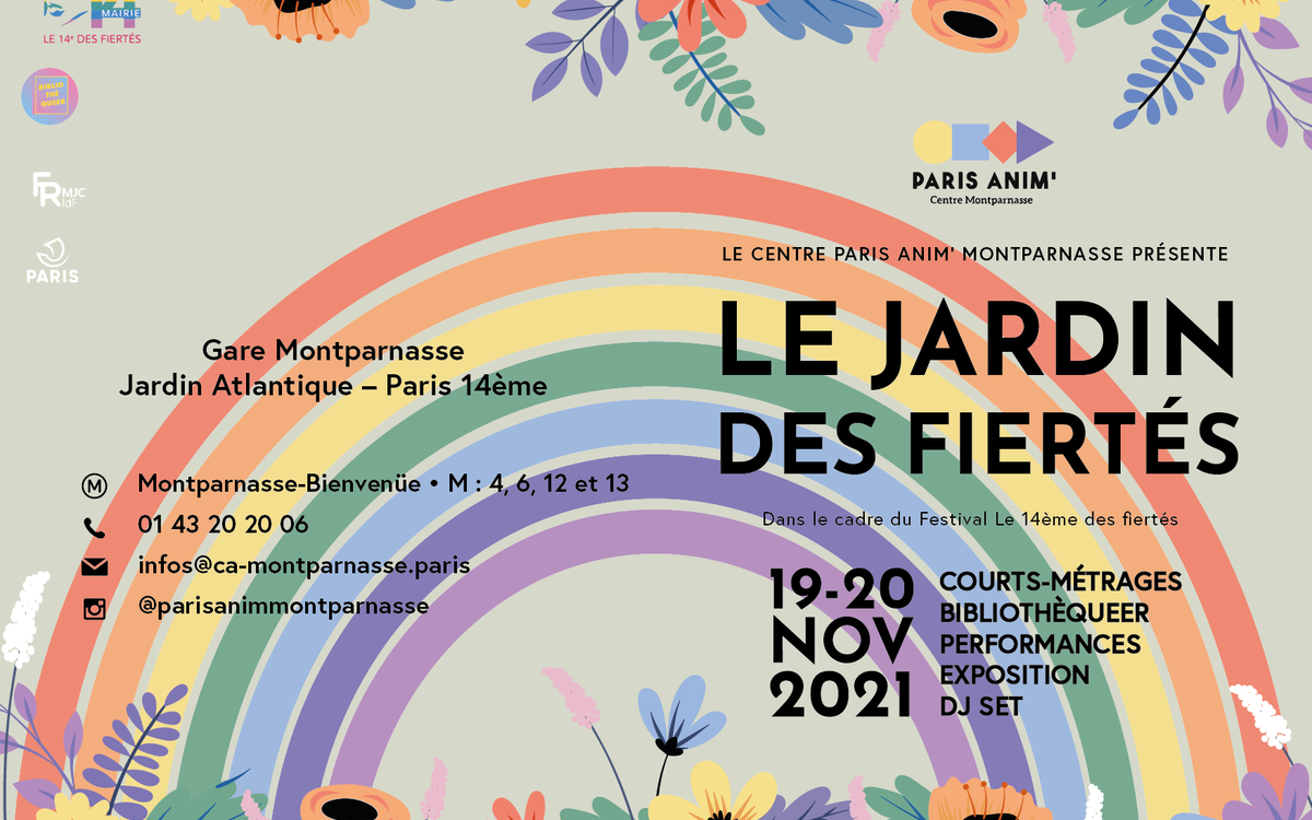 Dans le cadre du “14ème des Fiertés” - Festival des cultures et identités LGBTQIA+ qui se tiendra du 5 au 21 novembre 2021 dans le 14ème arrondissement - Le Centre Paris Anim’ Montparnasse vous invite, le temps d’un week-end, dans son “Jardin des Fiertés" les vendredi 19 Novembre et samedi 20 Novembre.
