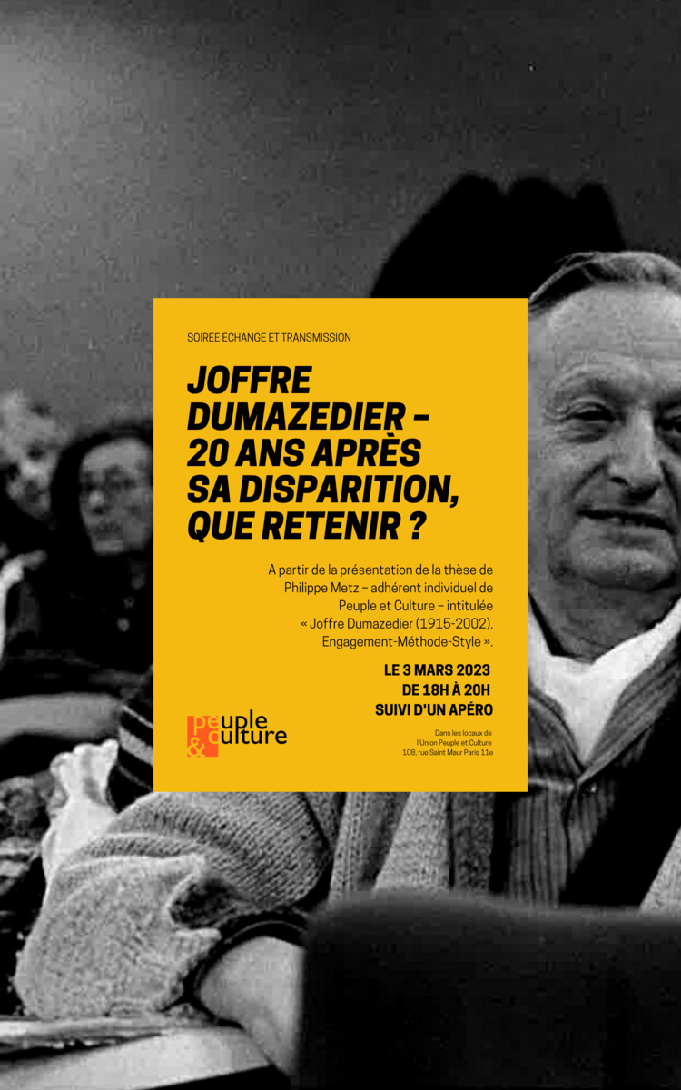 – adhérent individuel de Peuple et Culture – intitulée « Joffre Dumazedier (1915-2002). Engagement-Méthode-Style