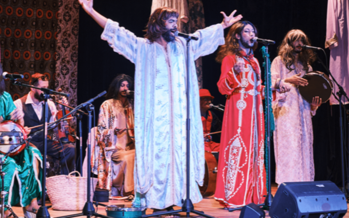 Un spectacle qui parcourt les siècles ! Les Cheikhates, ces femmes libres mais marginalisées interprêtées par des hommes habillés de robes chatoyantes, maquillés comme des stars de cinéma.