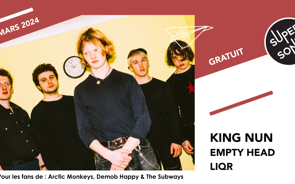 For the band that started as schoolfriends, King Nun have been on a long road. Consisting of Theo Polyzoides(vocals and guitar), James Upton (guitar), Nathan Gane (bass) and Caius Stockley-Young (drums), what would later become an official band started as friends bonding over their shared love of bands off the beaten path, from Richard Hell and Television to Sonic Youth and Pixies. Ethan Stockley-Young (bass VI, percussion) would later join the ranks completing the band’s line-up. On this foundation, they built their own off-kilter indie-punk hybrid, exhibited on 2019's Mass, cited by NME as 'brutal and brilliant' and DIY as 'a sound to be reckoned with'. The band have built an impressive live reputation too, listing headline tours in Europe and the US, with Rolling Stone naming them 'Best Rock Newcomers' at Bonnaroo, and supporting artists including Foo Fighters, Black Flag and Gang of Youths.