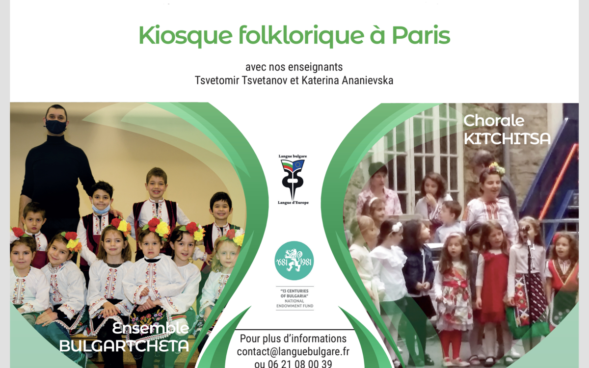 La Chorale "Kitchitsa" et l'Ensemble "Bulgartchéta" qui travaillent à l'Ecole bulgare "Cyrille et Méthode" à Paris sous la direction des enseignants Katerina Ananievska et Tsvetomir Tsvetanov vous présenteront des danses et des chants de Bulgarie.