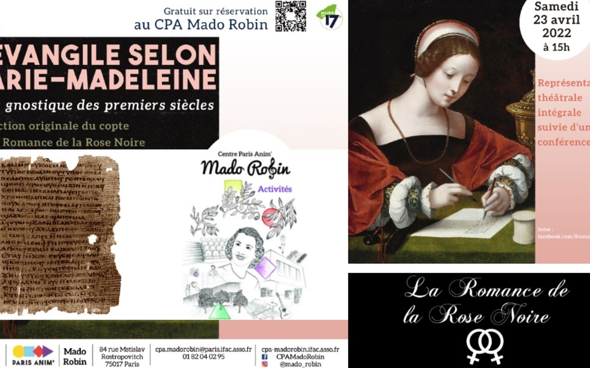 L'évangile perdu de Marie-Madeleine, retraduit de l'égyptien en français par la Compagnie des roses noires, représentation théâtrale intégrale et débat avec le public!