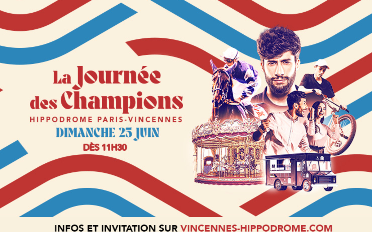 Dimanche 25 juin, l’Hippodrome Paris-Vincennes vous accueille pour une journée d’exception. Les champions seront partout : sur et en bord de piste, mais également dans les tribunes. Etrier et Sulky, musique, gastronomie, sport… Tout au long de la journée, les meilleurs de leurs disciplines, incarnations de l’excellence à la Française, vous feront vivre un moment unique et inoubliable.