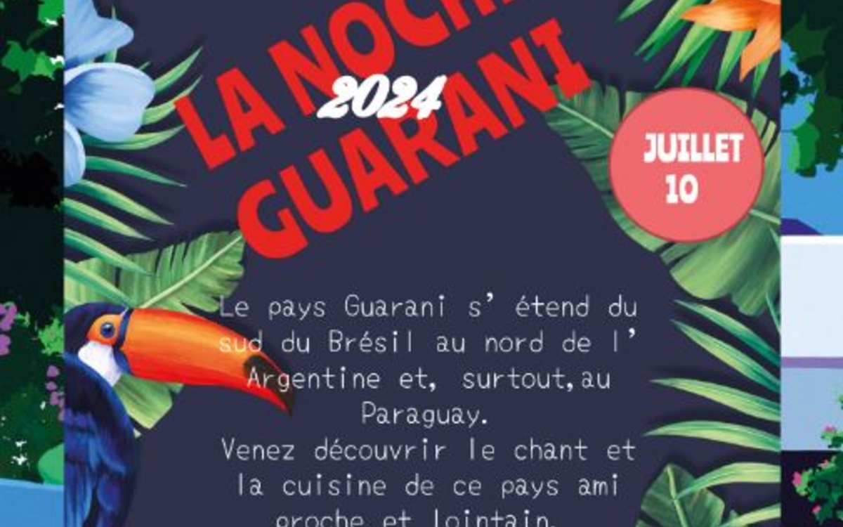 Le pays Guarani s’étend du sud du Brésil au nord de l’ Argentine et, surtout, au Paraguay. D’épaisses et anciennes forêts, des fleuves sans fin menant l’ eau des Andes à l’ Océan. La musique et la culture de ce pays croise les influences européennes, et celles, puissantes, vivantes, du peuple Guarani. La harpe guarani, témoigne de cette rencontre et la prolonge. Venez découvrir le chant et la cuisine de ce pays ami proche et lointain. Venez écouter le Guarani la langue du futur !!!