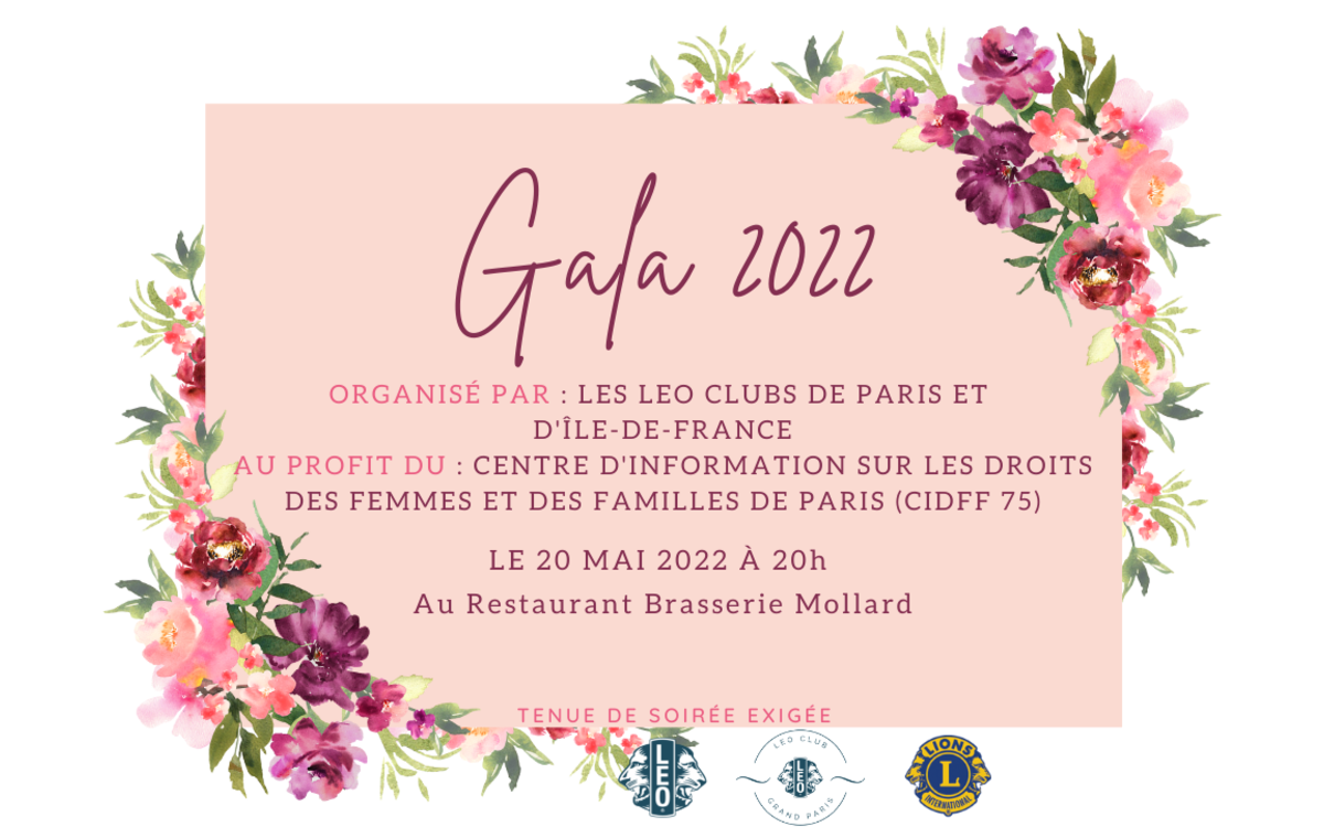 Un défi bientôt relevé puisque nos Leos d’Île-de-France vous invitent chaleureusement à participer à leur Gala qui se tiendra le 20 mai 2022 à 20h à la Brasserie Mollard située dans le 8ème arrondissement de Paris. Une soirée exceptionnelle ouverte à toutes et tous où de nombreuses surprises vous attendent, et dont les bénéfices et dons récoltés seront entièrement reversés au CIDFF 75.