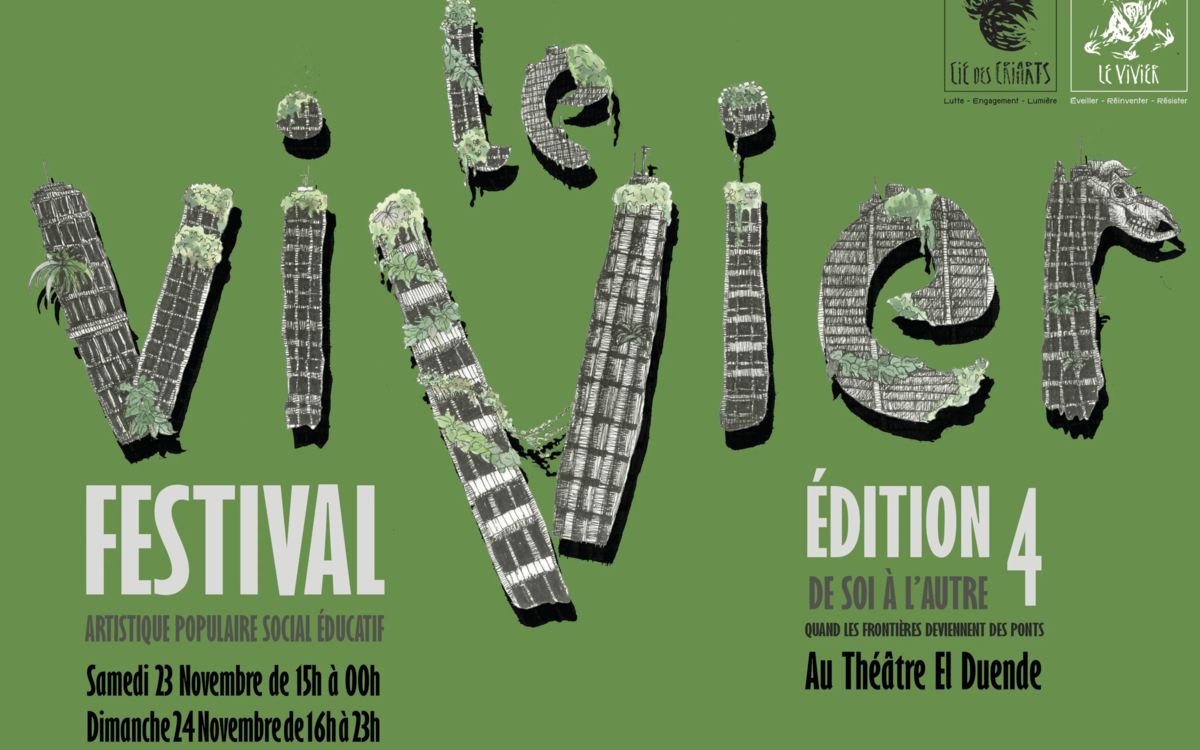Le Vivier X Théâtre El Duende revient pour une 4ème édition les 23 et 24 novembre 2024 au Théâtre El Duende. Ce festival pluridisciplinaire, devenu un rendez-vous incontournable de la scène artistique engagée, propose cette année une immersion profonde et authentique autour du thème « De Soi à l’Autre : Quand les Frontières Deviennent des Ponts ». Pendant deux jours, le Vivier invite à la réflexion sur des enjeux humains essentiels à travers l’art, en transformant les limites qui nous séparent en points de connexion.