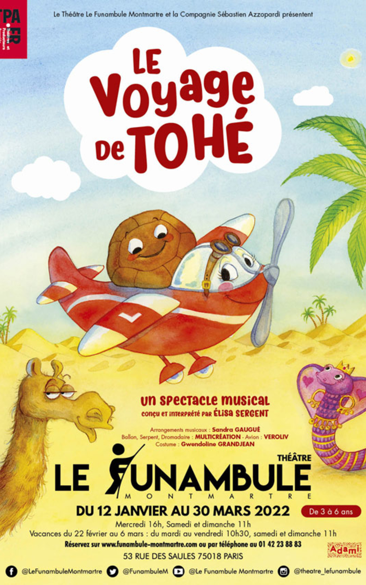 Marcelle emmène Tohé au désert. Il y découvre des amis surprenants, s’amuse, chante. Un spectacle poétique, drôle et musical !