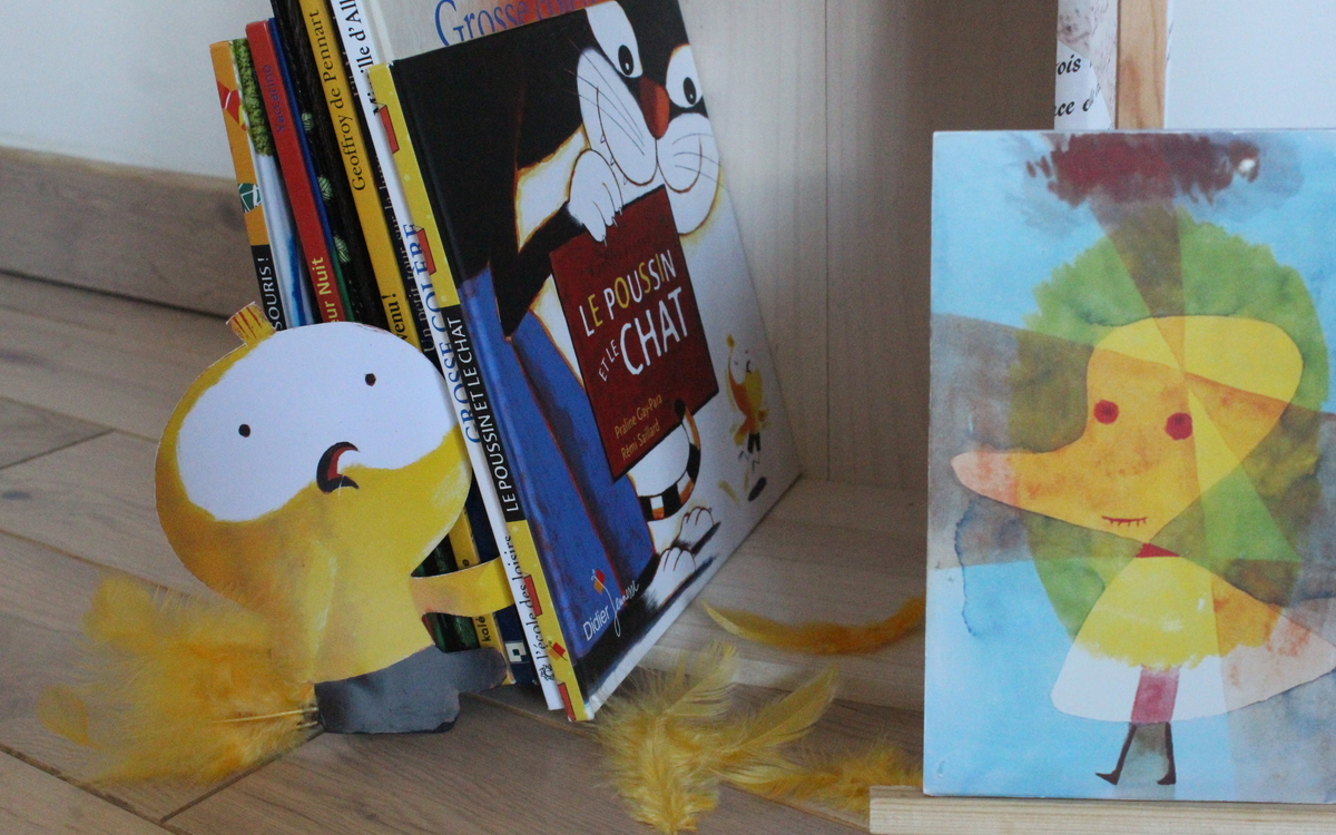 Pistache, petit personnage de papier tiré d'une œuvre de Paul Klee, accueille les enfants en conte et en chansons avant de les inviter à la lecture théâtralisée d'un livre.