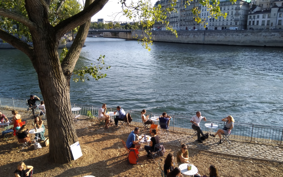 Nous découvrirons une photo de la place de l'Hôtel de Ville quand les voitures y stationnaient, un jardin flottant sur la Seine dont la végétation est typique de l'Ile de France, nous franchirons la Seine sur une passerelle piétonne…mais dont le bois importé non labellisé a sans doute contribué à la déforestation.