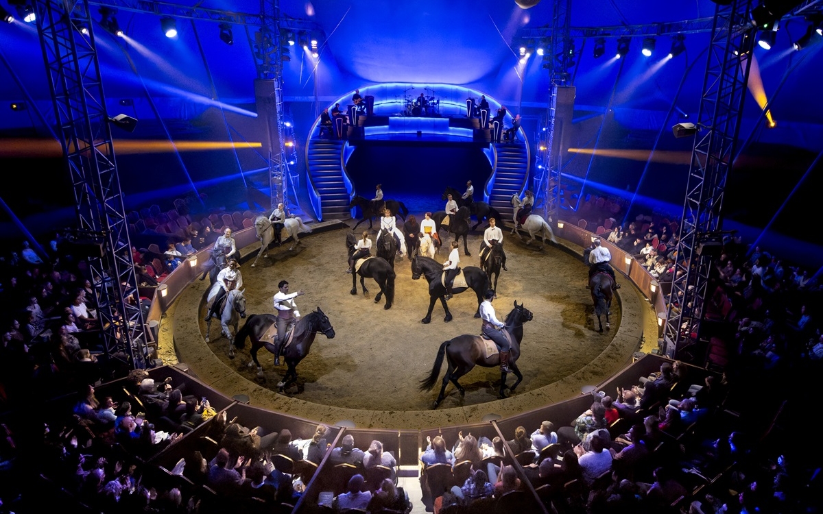 Avant même le lever de rideau, le public peut profiter d'une ambiance festive et musicale, en présence des artistes, grâce au pré-show, qui nous met l'eau à la bouche. Ensuite, la piste s'anime et la soirée défile au rythme des acrobaties aériennes, des tableaux équestres majestueux, le tout sublimé par des compositions musicales interprétées par la nouvelle chanteuse de la troupe : Margot Soria. Dans cette mise en scène, pas de temps morts, les numéros s'enchaînent pour nous offrir une parenthèse féerique, riche en émotions. Et pour ceux qui n'ont pas vu passer les 1 h 30 de spectacle, la soirée se prolonge avec l'after-show, histoire de discuter ou de prendre la pose avec les artistes.