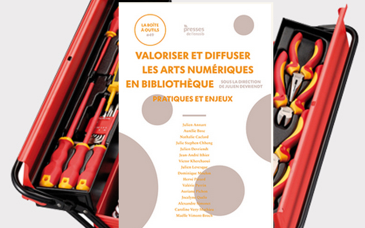 VALORISER ET DIFFUSER LES ART NUMÉRIQUES EN BIBLIOTHÈQUE, PRATIQUES ET ENJEUX / JULIEN DEVRIENDT –LES PRESSES DE L’ENSSIB , COLLECTION BOÎTE À OUTILS #49 Contributeur(s) : Julien,Bosc Aurélie, Caclard Nathalie, Devriendt Julien, Ithier Jean-André, Kherchaoui Victor ,Levesque Julien, Moulon Dominique, Perrin Valérie, Pichon Auriane, Pérard Hervé, Quélo Jocelyne, Simonet Alexandre, Stephen Chheng Julie, Very-Mathieu Caroline, Vimont-Broch Maëlle.