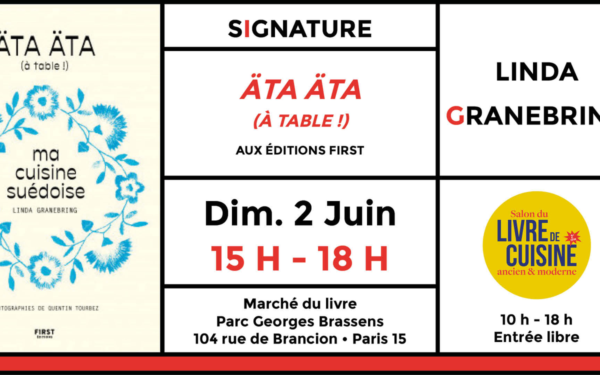 Linda Granebring en signature au Salon du livre de cuisine ancien et moderne
