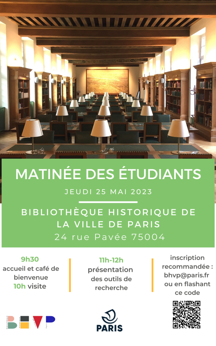 La Bibliothèque historique de la Ville de Paris organise le jeudi 25 mai 2023 une matinée à destination des étudiants.