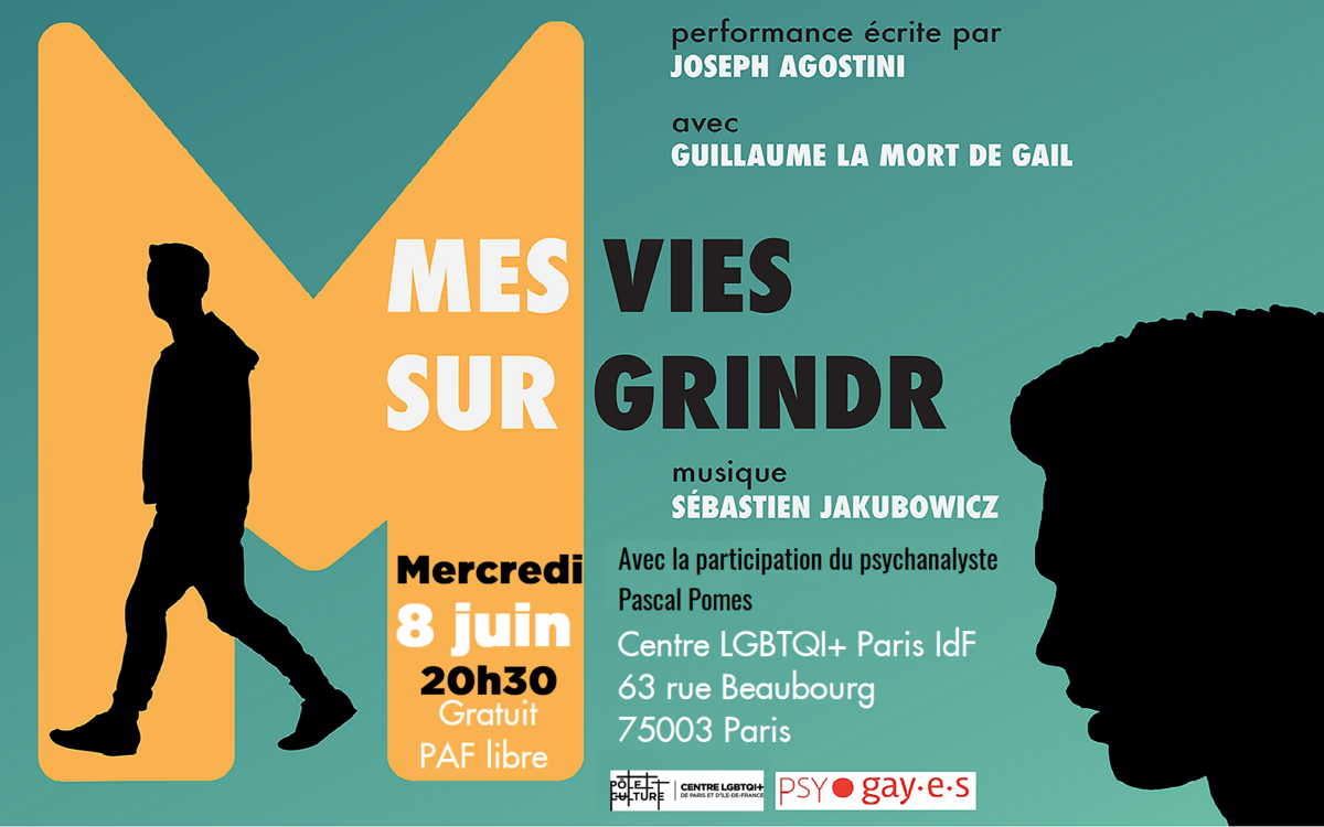 Performance débat sur les addictions aux applis de rencontres. "Mes vies sur Grindr" le 8 juin à 20h30. Gratuit (PAF libre)