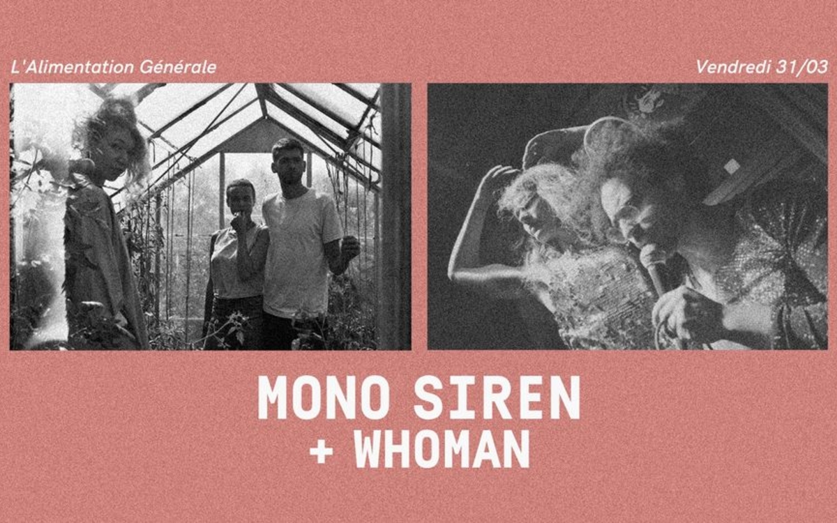 Concert de Mono Siren et Whoman à l'Alimentation Générale vendredi 31 mars