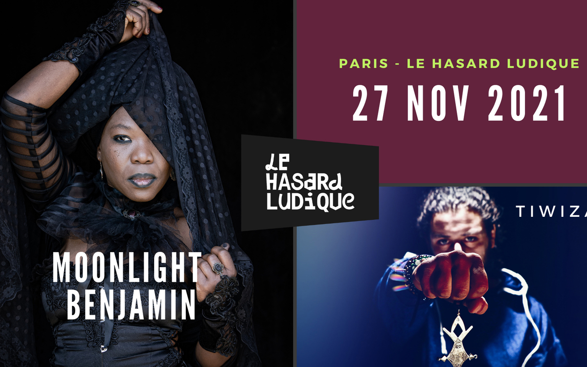 Rendez-vous le 27 novembre au Hasard Ludique (Paris 18) pour un concert fusion rock & worldmusic avec Moonlight Benjamin (voodoo blues rock caribbéen) et Tiwiza (rock berbère).
