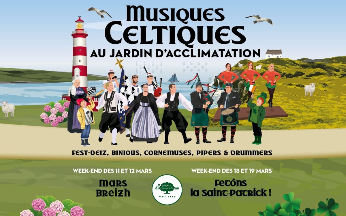 Les 11, 12, 18 et 19 mars, en plein air, le Jardin d’Acclimatation à Paris vous donne rendez-vous pour deux extraordinaires week-ends de musiques celtiques au son chaleureux des binious, des cornemuses, des bombardes, des accordéons, des bodhrans, des flûtes et des violons !