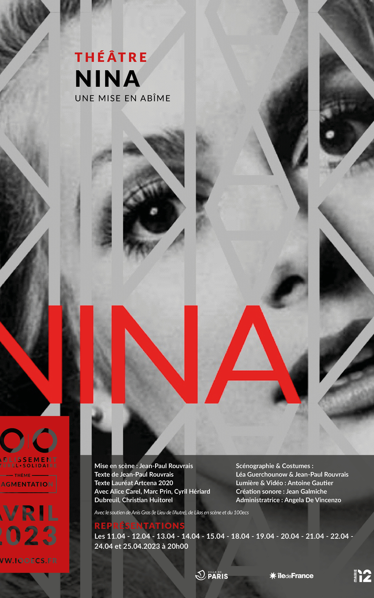 Mise en scène : Jean-Paul Rouvrais Texte Lauréat Artcena 2020 Avec Alice Carel, Marc Prin, Cyril Hériard Dubreuil, Christian Huitorel Scénographie & Costumes : Léa Guerchounow & Jean-Paul Rouvrais Lumière & Vidéo : Antoine Gautier Création sonore : Jean Galmiche Administratrice : Angela De Vincenzo