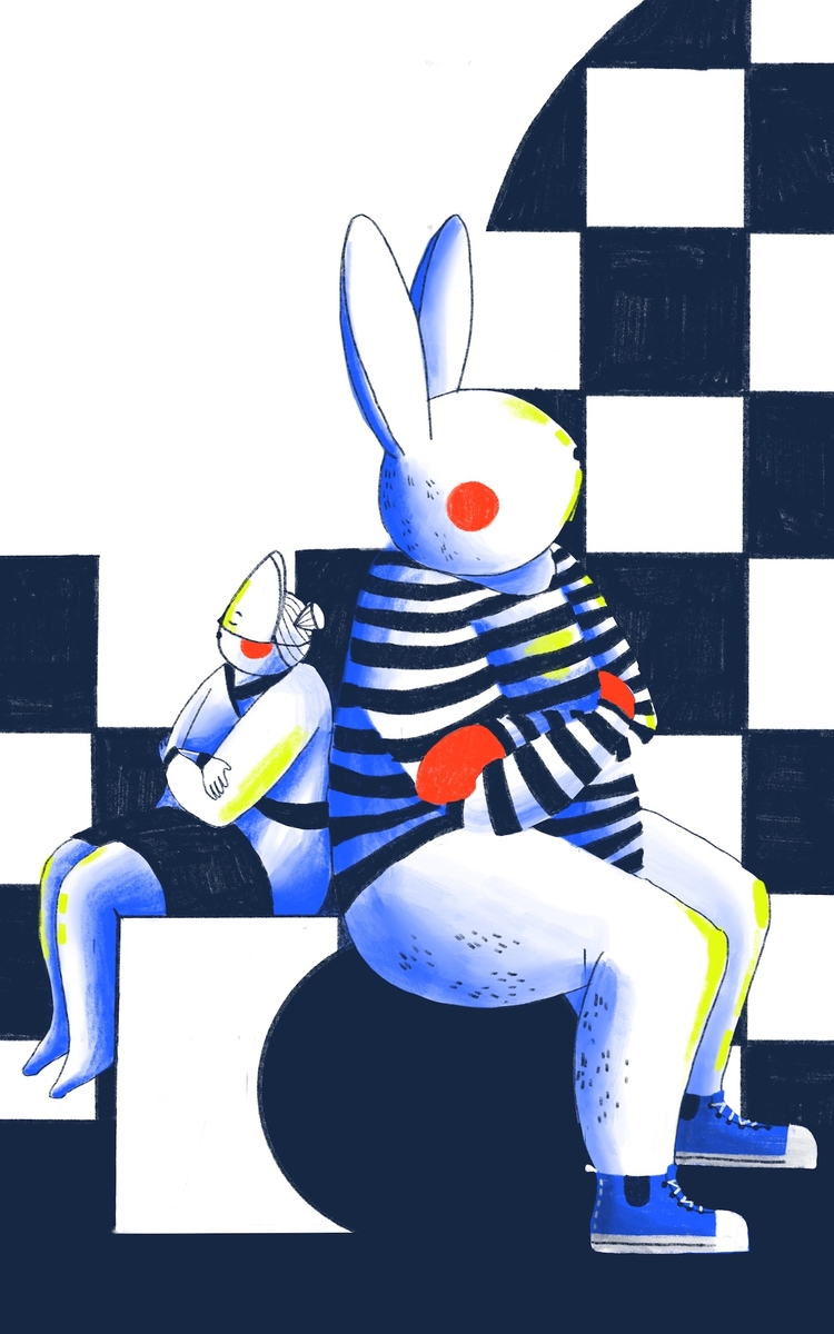 LE LAPIN ET LA REINE c’est l’histoire d’une amitié entre un mystérieux lapin blanc et une reine en kimono. Oscillant entre « Le pays des damiers », un espace quadrillé où tout est chorégraphié, chronométré, et « l’Autre côté », là où les choses ne sont pas toujours fidèles aux apparences, les deux personnages vont vivre ensemble de nombreuses aventures.