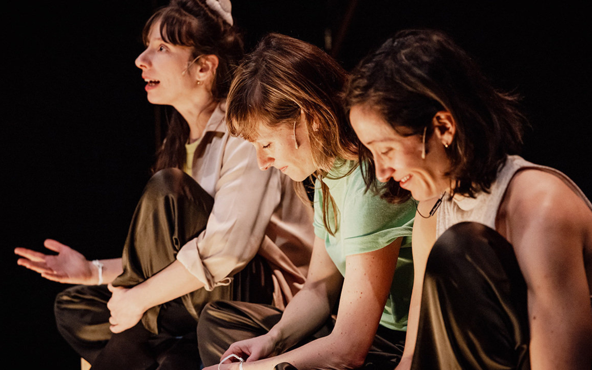 Dans un décor à la fois minimaliste et évocateur, une souche d’arbre, quelques néons et un bouquet de fleurs, trois comédiennes suivent les chemins sinueux d’une parole qui semble s’élaborer en direct. Les réflexions et expériences de vie qu’elles déplient se complètent, se font écho ou se contredisent pour dessiner un tableau composite et contemporain de l’amitié au féminin.