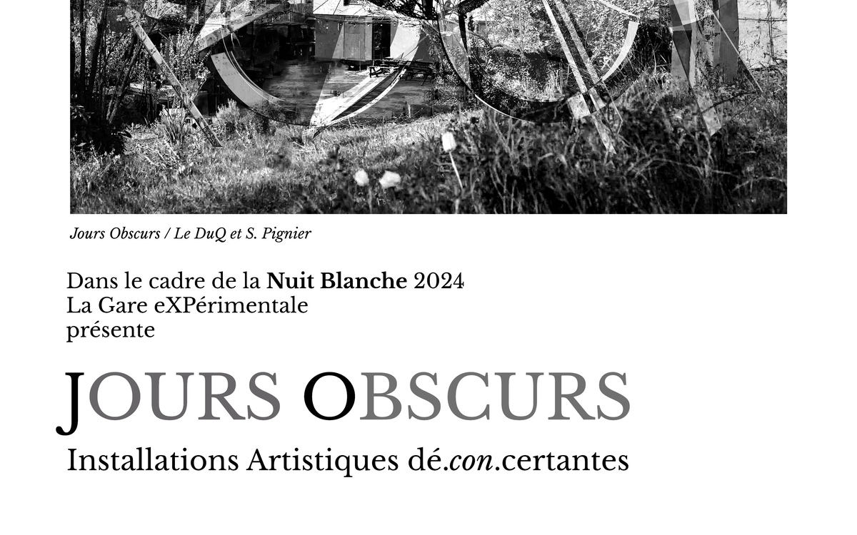 À l’occasion de la « Nuit Blanche », la gare eXPérimentale présente « Jours Obscurs », une installation énigmatique et sensorielle.