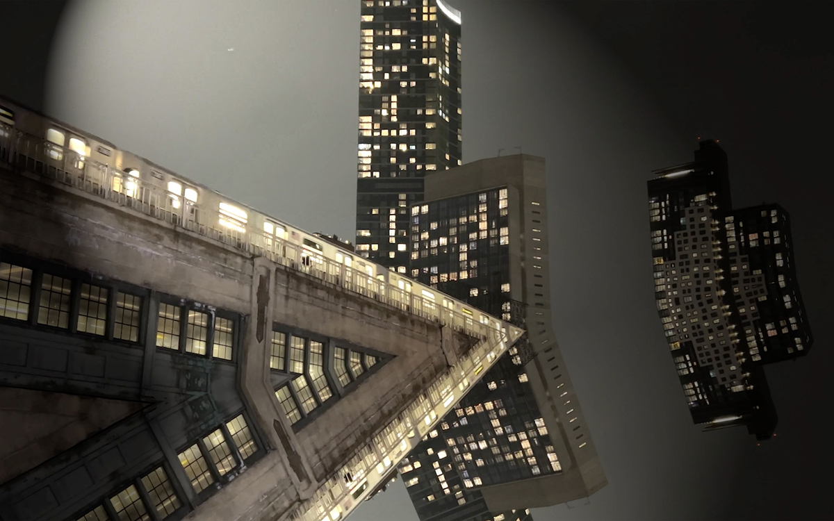 "Un train entre dans une scène éthérée, où la lumière et l'obscurité transforment une ville. Des reflets nocturnes scintillants apparaissent entre les lignes ondulées sur l'écran. Les vieux souvenirs sont dissous alors qu'une nouvelle version de la ville apparaît. Le rythme de la musique et l'écho d'une voix composent une nuit magique tandis que la vitesse du train s'accélère".