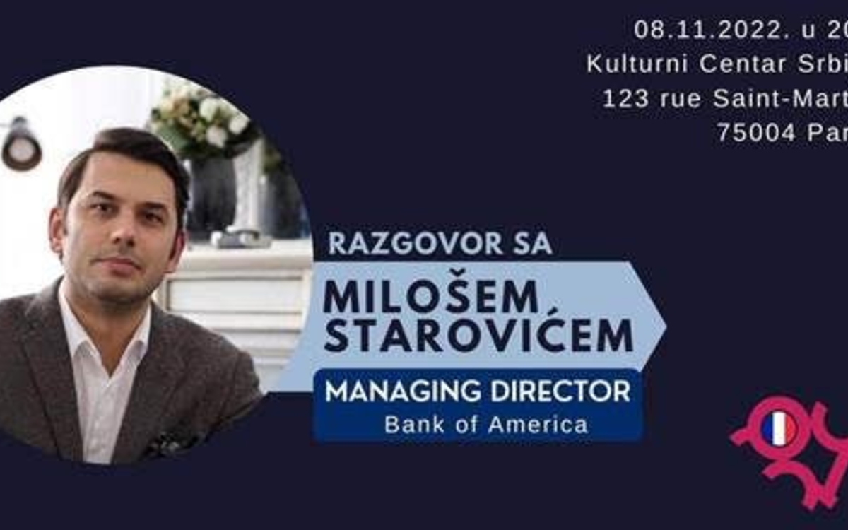 A cette occasion, notre invité est Miloš Starović, Managing Director à la prestigieuse Bank of America, qui a accepté de discuter avec les jeunes à propos de la situation économique actuelle dans le monde, ainsi que de partager ses expériences professionnelles mais aussi ses expériences de vie avec nous. Nous sommes certains que tout jeune peut tirer profit de ses expériences en raison non seulement de son cursus universitaire international, à l’Université Bocconi en Italie où il a obtenu son master, ainsi qu’à l’Université de Saint-Gall en Suisse où il a obtenu son doctorat, mais aussi grâce à ses expériences professionnelles à Londres et à Paris, où il travaille actuellement.