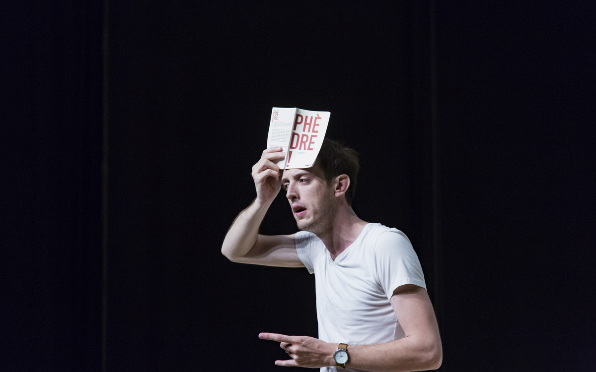 Imaginez : vous êtes au lycée, vous pensez assister à un cours sur Phèdre, d’ailleurs vous vous ennuyez déjà rien que d’y penser, et vous assistez à la conférence de plus en plus théâtralisée d’un professeur si passionné par la pièce qu’il finit par en jouer tous les personnages.