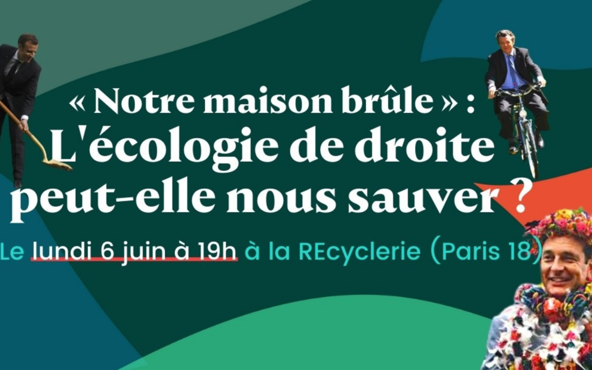 L'écologie politique a-t-elle toujours été à gauche ? Peut-elle être de gauche « et en même temps » de droite ? Que font les maires et les élu·es de droite pour le vivant et le climat ? La croissance « verte » suffira-t-elle ? En somme, l'écologie de droite peut-elle nous sauver ? A la veille des législatives, c'est la question – volontairement provocatrice – à laquelle nous tenterons de répondre ce lundi 6 juin à la REcyclerie !