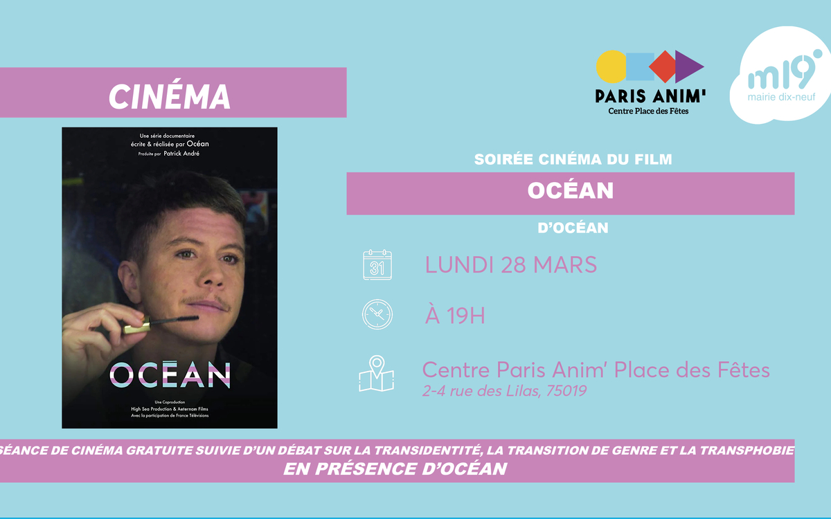Venez assister à cette projection du film documentaire "Océan" d'Océan, comédien, réalisateur et humoriste. Cette projection sera suivie d'un échange sur la transidentité, la transition de genre et la transphobie en présence d'Océan.