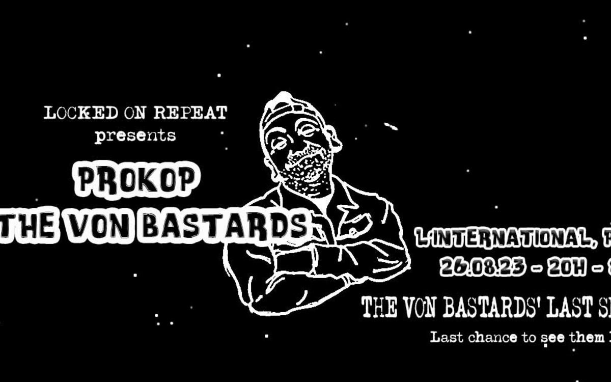 Locked on Repeat vous invite à la der de The Von Bastards, en 1er partie de Prokop avec son groupe, les Click'n'Collectors.Venez fêtez ça comme il se doit ! Dernière chance de voir les Von Bastards !