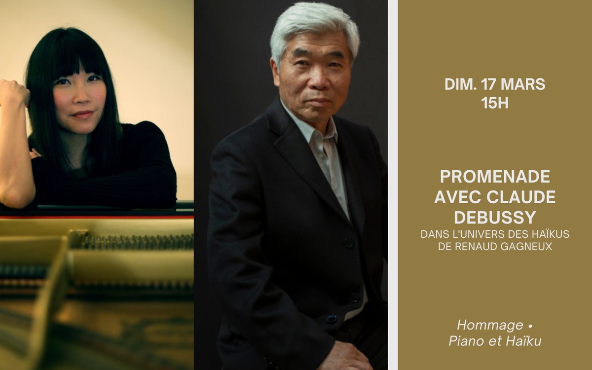 Claude Debussy, né en 1862, et Renaud Gagneux, né en 1947, sont deux compositeurs français fascinés par la culture japonaise. Héritier de la tradition musicale française érigée par Debussy, Renaud Gagneux, fasciné par l’univers du Haïku qu’il découvrit au Japon dans ses dernières années, changea alors radicalement le style de ses créations.