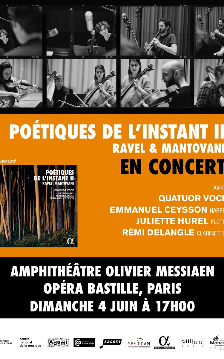 Concert de sortie du nouveau disque du Quatuor Voce : Poétiques de l’instant II : Ravel / Mantovani (Alpha Classics)