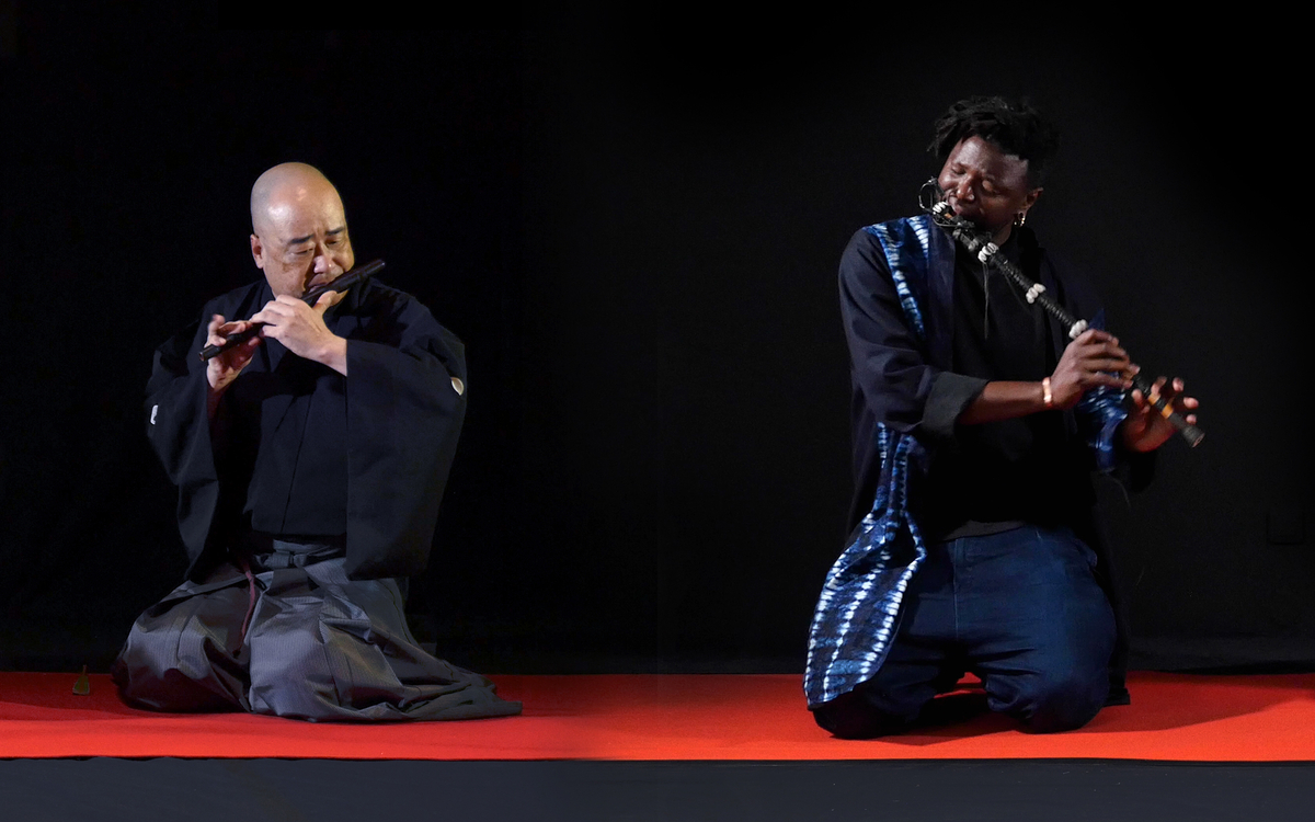 Smaïl Kanouté, Native Maqari et Simon Rouby se rencontrent en 2020 alors qu’ils travaillent sur le même personnage historique : Yasuke, le Samouraï Noir. Depuis, Smaïl lui a consacré un film et une performance. Native et Simon s’en sont inspirés pour réaliser une étude comparative du Sahel et du Japon, découvrant des similitudes entre les instruments traditionnels peuls et japonais. Les trois artistes échangeront sur leurs pratiques et leurs recherches qui ont en commun de questionner l’expérience noire et la migration, après la diffusion de deux oeuvres présentées dans l’exposition : Yasuke Kurosan et Dialogues.