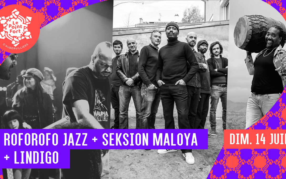 En continuité d'une journée festive et multiculturelle en partenariat avec la Maison des Langues et des Cultures d'Aubervilliers dans le cadre du Festival Sur les (4) Chemins des Cultures, cette soirée de concerts vous fera découvrir un ensemble de groupes innovants, spectaculaires en live et débordants d'énergie : les fanfarons de la Fabrique Orchestrale Junior d'Aubervilliers qui présenteront l'aboutissement de leur stage "Roforofo Summer Camp", le groupe Roforofo Jazz, Seksion Maloya, et Lindigo !