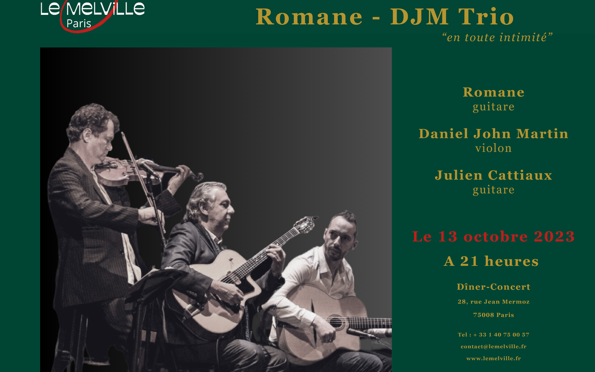 Ces trois monstres du Jazz manouche se produisent de manière exceptionnelle dans l'écrin du Melville. Romane sera accompagné à la contrebasse par Daniel John Martin et à la guitare par Julien Cattiaux. L'intimité avec le public fait écho à celle des artistes pour une soirée qui s'annonce magique.