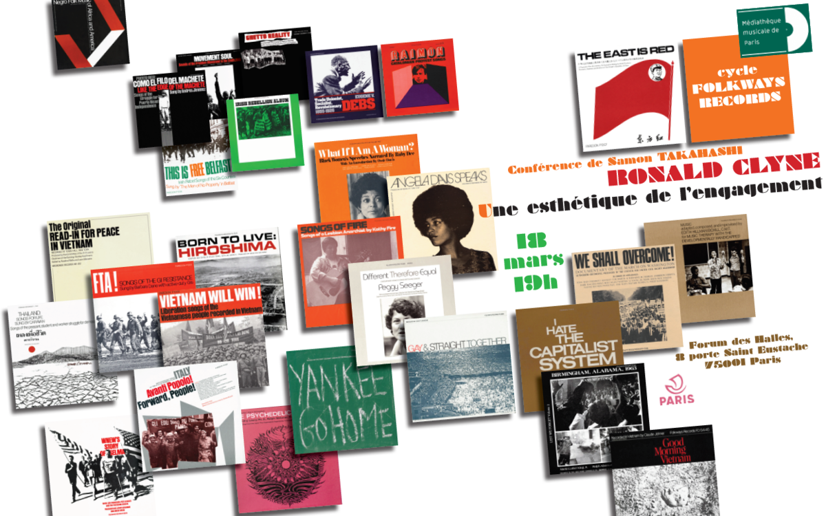 À travers une sélection de pochettes de disques du peintre et designer emblématique de Folkways Records, Ronald Clyne (1925-2006), le musicien et plasticien Samon Takahashi analyse l’esthétique du graphiste visionnaire sous l’angle du militantisme.