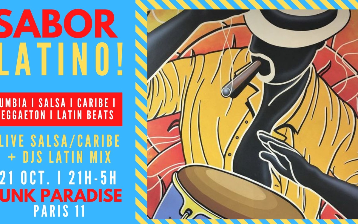 SABOR LATINO est la soirée qui vous fait voyager en Amérique Latine du Mexique jusqu'à l'Argentine et le Chili en passant par Cuba, les Caraïbes, Panama, Puerto Rico, Costa Rica, Venezuela, Colombie ou encore l'Equateur, La Bolivie, l'Uruguay… Todo el sabor latino en Paris !!