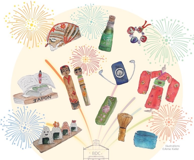et sacs, chapeaux, poupées, tissus et kimonos, thé, saké,