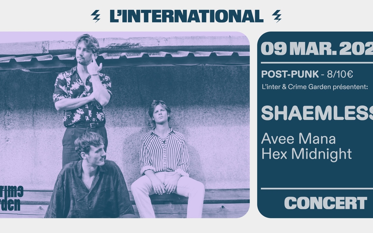 Shaemless est un trio néerlandais qui fait un mélange de post-punk et de garage inspiré par des groupes comme Iceage, The Birthday Party et The Stooges, de post-punk et de garage inspiré par des groupes comme Iceage, The Birthday Party et The Stooges. Leur performance intense et transpirante a transformé de nombreuses salles en masses en ébullition. Les membres du groupe ont été pris en étau du début à la fin de leur prestation. Leur premier album, SUUZ, est sorti en 2022. "SUUZ, de par sa nature même, est un album qui ne peut s'empêcher de puiser dans une variété d'états émotionnels, tant au niveau des paroles que de la mélodie, d'émotions, tant au niveau des paroles que des mélodies. C'est un album qui, pour le dire simplement, a ses racines dans l'énergie rauque du punk, dans l'énergie rauque du punk, tout en étant orné d'une multitude de textures et d'influences polyphoniques, d'influence polyphonique, couvrant une période apparemment infinie d'inspiration musicale.'' - Deep Hit Music