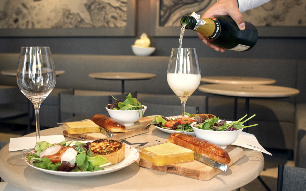 - Une coupe de champagne Taittinger ou un verre de vin au choix